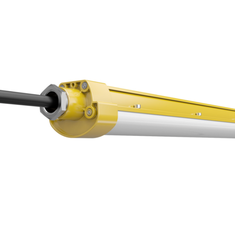 A Luminária LED 80W ATEX estanque para instalação à superfície, com proteção contra atmosferas potencialmente explosivas, é concebida para fábricas, armazéns, oficinas, armazéns industriais, cabinas de pintura, barcos, estações de serviço e zonas com atmosferas potencialmente explosivas em geral.