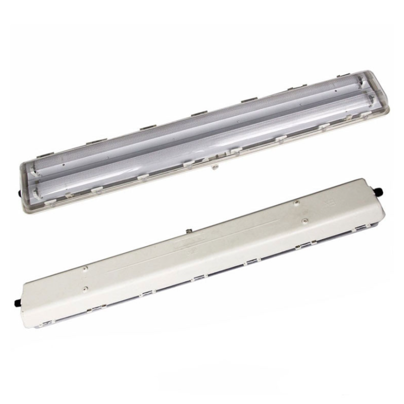 A Armadura ATEX tem capacidade para dois tubos T8 LED de 60 cm de diâmetro, protecção contra atmosferas explosivas e é concebida para fábricas, armazéns, oficinas, armazéns industriais, parques de estacionamento, supermercados, estações de serviço e áreas com atmosferas potencialmente explosivas em geral.