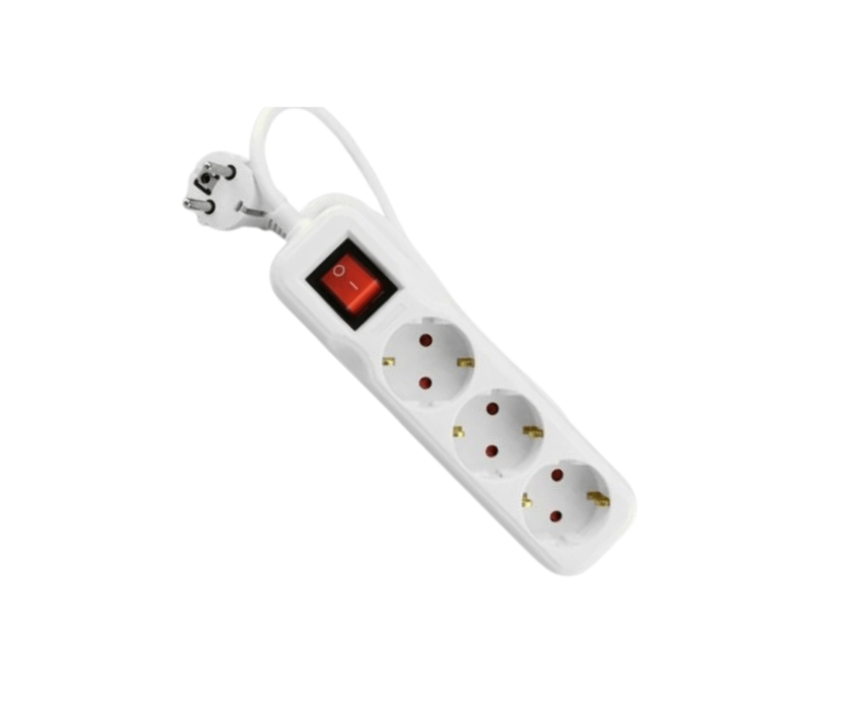 Bloco de tomadas triplo com 3 entradas Schuko, cabo de 3 metros e interruptor iluminado, ideal para uso doméstico, escritório ou espaços de informática.