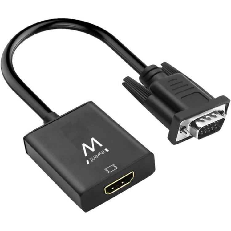 Ewent EW9866. Comprimento do cabo: 0,202 m, Conetor 1: VGA (D-Sub), Conetor 2: HDMI + 3.5mm. Peso: 85 g, Largura: 44 mm, Profundidade: 19 mm. Quantidade por conjunto: 1 unidade(s), Comprimento da embalagem: 192 mm, Profundidade da embalagem: 155 mm