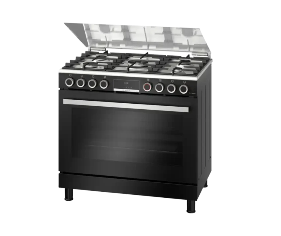 O Fogão Bosch Série 6 de 90 cm combina design robusto, alto desempenho e versatilidade profissional para transformar sua experiência na cozinha. Com acabamento elegante em preto e aço inoxidável, este modelo oferece 5 queimadores potentes, incluindo um queimador Wok de 4,2 kW, ideais para todos os tipos de preparo – do rápido ao gourmet.