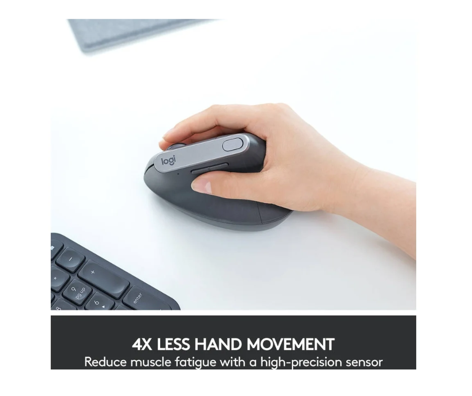 O Logitech MX Vertical é um rato ergonómico de alto desempenho, desenvolvido para reduzir o esforço muscular, diminuir a pressão no pulso e melhorar a postura do braço. Ideal para profissionais que passam longas horas no computador, combina conforto, precisão e produtividade com um design sofisticado.